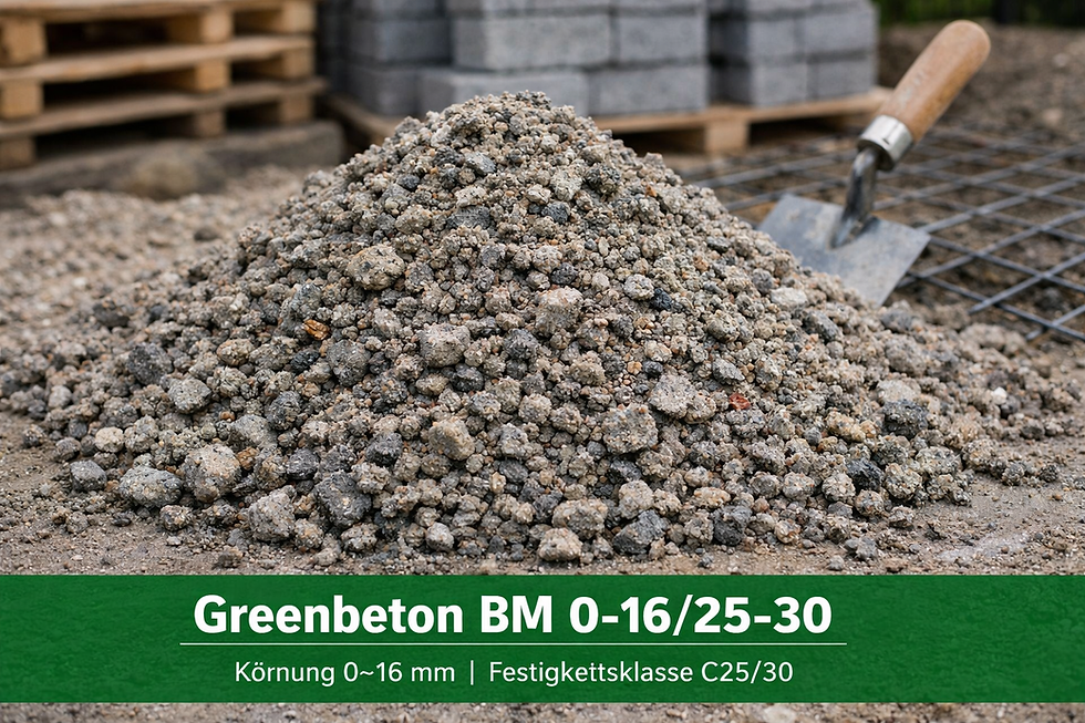 Unser Greenbeton ist eine zertifizierte Rezyclierte Gesteinskörnung aus 100 % Recycelten Beton.